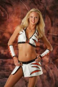 I was a high school cheerleader and loved it. When I started college as an engineering student, my academics came first and becoming a college cheerleader in addition to my challenging classes seemed too demanding. During my senior year of college, I decided it was a great time to pursue a professional cheerleading career. My mom and older sister had also been professional cheerleaders for the Cincinnati Bengals, so the notion of doing it myself was becoming more of a goal. I missed performing, dancing, and the pride being part of a team. I was very enthusiastic when I attended their try-outs and loved meeting the other women! I knew this was the right decision!